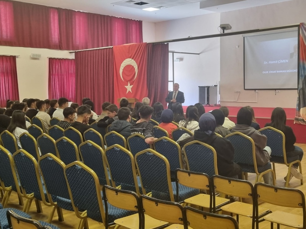 Okulumuzda Kariyer Günleri etkinlikleri kapsamında 11. ve 12. sınıf öğrencilerimize Banka Müdürü Hamit ÇİMEN tarafından Bankacılık sektörü ile ilgili seminer verildi.Katılımlarından dolayı Olur Ziraat Bankası Müdürü Hamit ÇİMEN'e teşekkür ederiz.